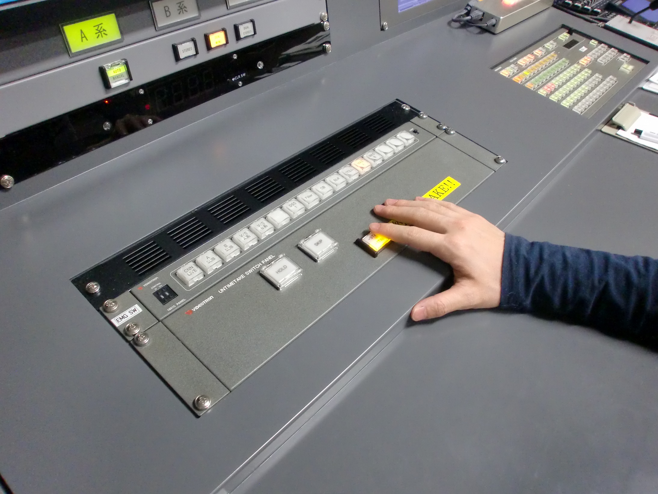 マスターという部署で、放送を維持する為に24時間を交代して業務を行っています。放送に問題が無いか監視をし、放送機器にトラブルが発生した場合の復旧対応や、日本向けにCMを差し替える作業も行っています。CMの差し替えは、タイミングを計って細心の注意を払って行う最も重要な仕事の1つです。